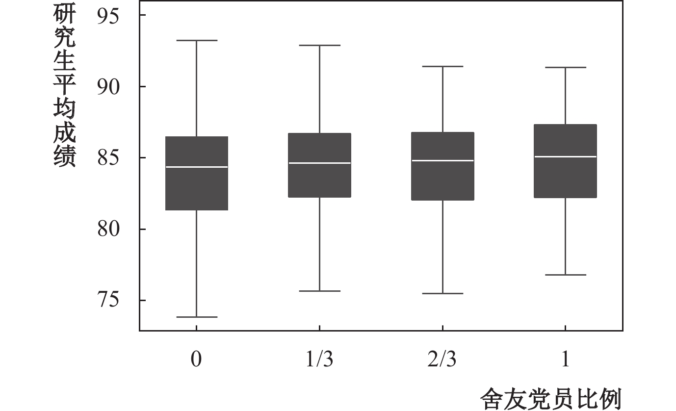 其次,党员本身可能具有优秀的学习素质,进而影响同伴的学业表现(王悦和邹世享,2008;常志静和时延春,2017)。第一,党员可能有良好的学习技巧。学习素质高的党员通常更容易理解学习材料或解决主要问题,在与弱势学生讨论交流课程知识时,帮助他们更有效地理解课程材料。由于研究生课程是专业和困难的,往往涉及大量专业中英文文献的阅读、专业知识的批判性吸收和创新。选择攻读研究生学位的学生通常有很强的学习动机,并且会花很多时间在学习上,学术技能的提高可能大幅提高研究生的学业表现。第二,党员学生可能较好地完成日常的学校课堂评估,如学生出勤率、课堂互动、课程作业。研究生课程作业可能考察学生的一系列学术能力,如演讲技巧、论文写作和研究项目设计。学习素质高的党员可能高效地理解课程作业内容,可以辅导他们的同伴完成他们的课程作业,或在小组讨论中分享他们对课程学习的见解。第三,党员可能会合理安排和分配学习时间。党员学生可能具备优秀的时间管理技能和学习习惯,以保持良好的学业表现。同宿舍的学生可以一起学习,有良好学习习惯的学生可以对室友的时间分配产生积极的影响。