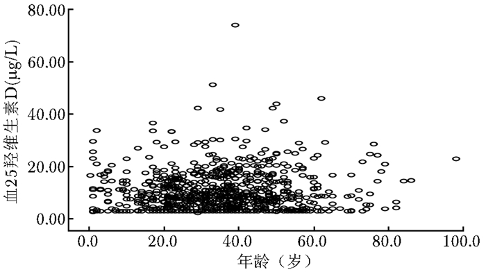| 图 2 维生素D与年龄的关系 Fig 2 Correlation of vitamin D status and age |