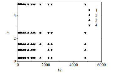 表 2 不同ε下的Fr-η拟合方程各变量数值 Table 2 Values of variables of the Fr-η fitting equation under different ε |