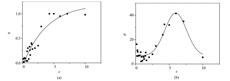图 7 不同ε下的η和θ值(Fr = 67.15) Fig.7 η and θ under different ε (Fr = 67.15) |