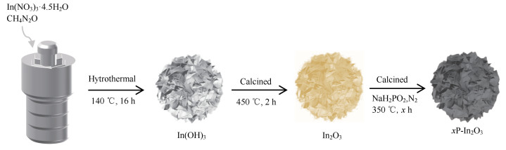 图 1 xP-In2O3催化剂制备流程 Fig.1 Schematic illustration of the synthesis of xP-In2O3 catalysts |