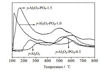 图 3 不同磷酸浓度处理的γ-Al2O3 NH3-TPD图 Fig.3 NH3-TPD of γ-Al2O3 modified with different amounts of phosphorus acid |