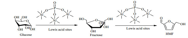 图 8为葡萄糖在磷酸改性γ-Al2O3上转化为HMF的反应路径简图。