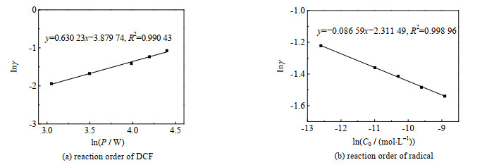 图 4 DCF与自由基反应级数的求取 Fig.4 Evaluation of reaction orders between DCF and free radicals |
