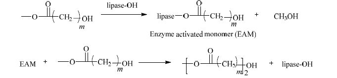 方案 1 脂肪酶催化不断聚合的机理 Scheme1 Mechanism of step-growth polymerization catalyzed by lipase |