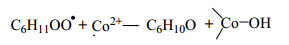 从图中可以看出,在实验条件下不添加催化剂时环己烷也能发生氧化反应(无催化氧化),但环己烷转化率和各产物浓度均很低。添加催化剂后,环己烷氧化反应明显加快,相同反应时间内环己烷转化率及产物环己醇、环己酮浓度有较大的增加,而CHHP浓度则呈现下降趋势,己二酸浓度则一直变化不大。这是因为适量钴离子的加入增加了活性自由基浓度、缩短诱导期、加速氧化反应速率,同时可促进中间产物CHHP分解生成目标产物环己醇和环己酮。但是加入过多的催化剂则可能对氧化反应起抑制作用。因为在二价钴向三价钴转化时,来不及转化的二价钴将会消耗自由基造成其链式反应中断,从而抑制反应进一步进行[18],如式(1)所示。