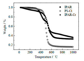 图 10 PS-Cl, IPAR和IPAR-Cr的热重分析 Fig.10 TGA curves of PS-Cl, IPAR and IPAR-Cr |