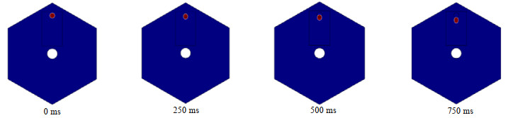 模拟得到的液滴在非均匀电场中受介电泳力迁移过程如图 8所示。