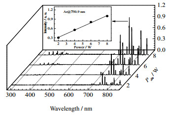 图 3 不同放电功率下的发射光谱图 Fig.3 Emission spectra of different discharge powers |