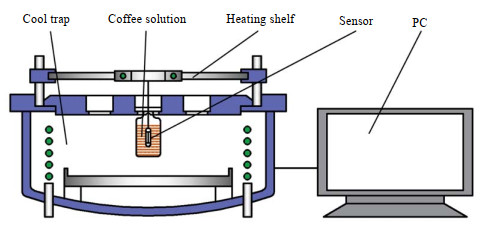 2) 用滴管取8 mL咖啡溶液移入西林瓶,将西林瓶置于冷冻干燥机的冷阱中;
