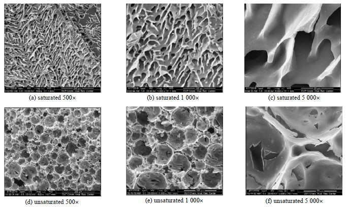 图 5 饱和与非饱和物料常规冷冻干燥产品SEM图 Fig.5 SEM images of conventional freeze-dried products from saturated and unsaturated materials |