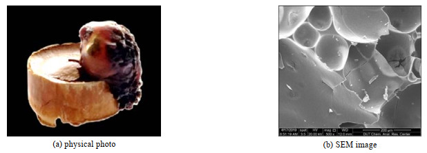 图 8 饱和样品微波冷冻干燥产品的实物图和SEM图 Fig.8 Physical photo and SEM image of microwave freeze-dried products from a saturated sample |