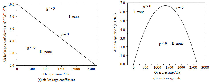(1) 在“g+模型”中,因g > 0,必有A > -B2/(4C)。当-B2/(4C) < A < 0时,漏风系数与超压值呈负相关;当A > 0时,两者呈正相关。