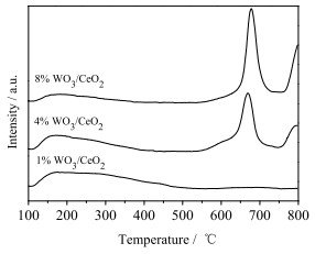 图 10 WO3/CeO2的氨气程序升温脱附曲线 Fig.10 NH3-temperature programmed desorption curves of WO3/CeO2 |
