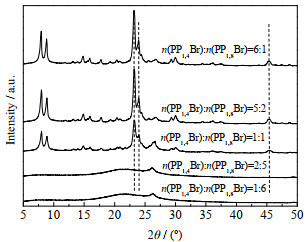 图 2 不同n(PP1, 4Br)/n(PP1, 8Br)合成ZSM-11的XRD谱图 Fig.2 XRD patterns of ZSM-11 synthesized at different n(PP1, 4Br)/n(PP1, 8Br) |