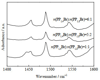 图 6 不同n(PP1, 4Br)/n(PP1, 8Br)合成ZSM-11分子筛的吡啶红外谱图 Fig.6 Py-IR spectra of ZSM-11 synthesized at different n(PP1, 4Br)/n(PP1, 8Br) |