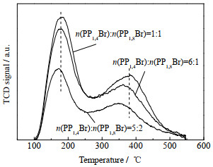 图 7 不同n(PP1, 4Br)/n(PP1, 8Br)合成ZSM-11的NH3-TPD谱图 Fig.7 NH3-TPD patterns of ZSM-11 synthesized at different n(PP1, 4Br)/n(PP1, 8Br) |