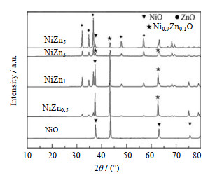 图 1 NiZnx催化剂的XRD谱图 Fig.1 XRD patterns of NiZnx catalysts |