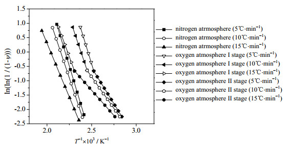| $ \text{ln}(\text{ln}\frac{1}{{1-\psi }}) = \text{ln}\frac{{A{E_\text{a}}}}{{\beta R}}-5.3308-1.0516\frac{{{E_\text{a}}}}{{RT}} $ | (9) |