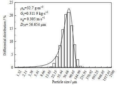 研究表明,滤饼的形成不仅会提高整体的除尘效率,还会增加装备对于细微粉尘的脱除能力[25, 38-40]。实验过程中对出口处气体所含粉尘进行采集——以大粒径粉尘、32.7 g⋅m−3入口浓度为例,粒度分析结果如图 11所示。从图中可以看出,出口粉尘呈高斯分布,对13.854 μm以下粉尘脱除效率可达99.9 %。说明该装备不仅整体除尘效率突出,对于细微粉尘的脱除也具有极好的表现。