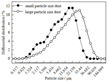 图 2 粉尘粒径分布 Fig.2 Particle size distributions of the used dusts |