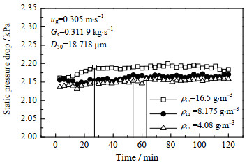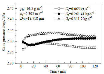 图 3 不同颗粒循环强度下床内压降变化曲线 Fig.3 Profiles of pressure drop in filter under different particle circulation fluxes |