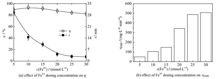 图 3 Fe3+投加浓度对降解性能的影响 Fig.3 Effects of Fe3+ dosing concentration on degradation performance |