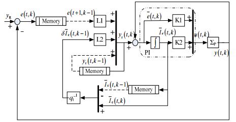 图 1 二维ILC-PI控制框图(虚线框内为PI控制器) Fig.1 Block diagram of the ILC based 2D PI controller (PI controller is in the dotted box) |