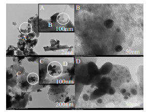 图 5 催化剂1%Au-0.5%Bi/PMo11- BMo11/ZSM-5-m的TEM图 Fig.5 TEM micrographs of catalyst 1%Au-0.5%Bi/PMo11-BMo11/ZSM-5-m |