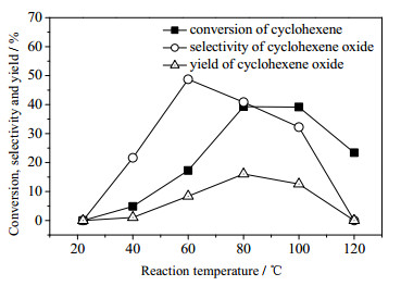 图 9 反应温度对分子氧催化环氧化效果的影响 Fig.9 Effect of reaction temperature on the epoxidation of cyclohexene |