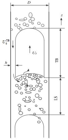 2.1 弹状流模型如图 2所示为稳定流动弹状流的一个流动单元,该流动单元有泰勒气泡段TB和液柱段LS组成。由于两段气相形态不同,压差也表现出不同的形式。