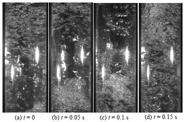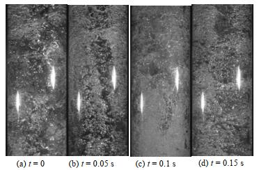 图 4 气力提升泵弹状流流动结构(JG=2.5 m·s-1, γ =0.4) Fig.4 Slug flow in airlift pump at JG=2.5 m·s-1, γ =0.4 |