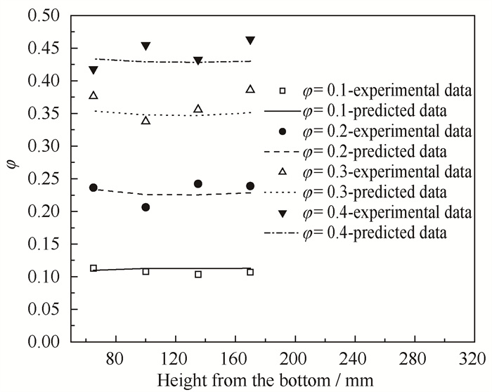 从图 12可以看出,在非清液区模拟结果显示不同高度处的固含率数值几乎完全相同,说明固相分布几乎达到了完全均匀,这与实验的结果相近。