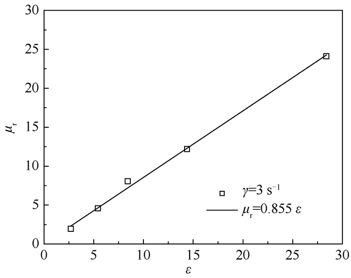 图 4 相对黏度与ε的拟合关系图 Fig.4 Fitting relationship between relative viscosity and ε |