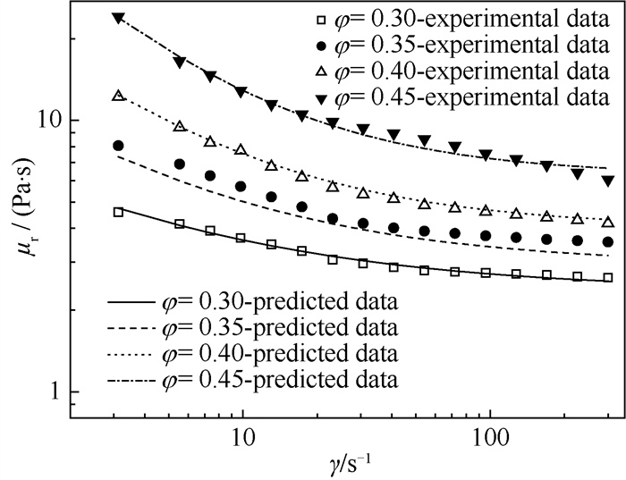| $ \mu_{\mathrm{r}, \gamma}=\frac{\mu_{\mathrm{m}}}{\mu_{\mathrm{l}}}=\left(1-\frac{\varphi_{\mathrm{s}}}{\varphi_{\mathrm{m}}}\right)^{-K} $ | (11) |