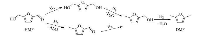 图 2 HMF加氢制备DMF Fig.2 Synthesis of DMF via hydrogenation of HMF |