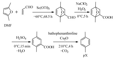 图 1 pX的生物质合成路线 Fig.1 Synthesis of pX via biomass route |