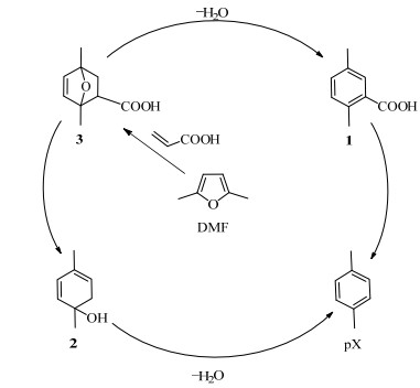 图 3 DMF和乙烯合成pX Fig.3 Production of pX from DMF and ethylene |