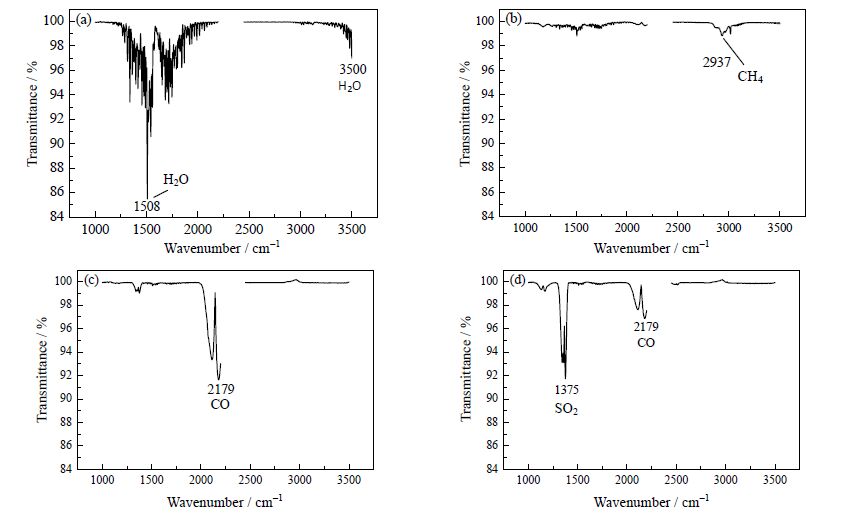 与本文有关的小分子气体的红外波数区间[7]:H2O:1300~1800 cm-1、 3500~3800 cm-1; CO2:2200~2450 cm-1;CO:2000~2200 cm-1;CH4:2900~3100 cm-1;SO2:1300~1400 cm-1。
