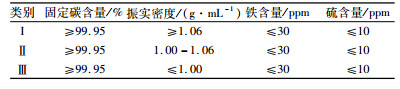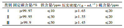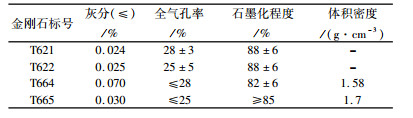 作为金刚石制备的原料,石墨材料的性能对金刚石的质量有着直接的影响。研究发现,石墨转变为金刚石的过程中,石墨原料的不同对合成的金刚石有很大影响,因此必须对制备金刚石用石墨原材料制定规范,如表 4所示。