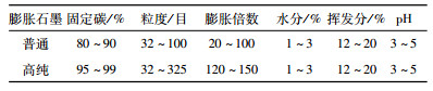 工业上柔性石墨一般用天然大鳞片石墨或石墨化程度很高的人工石墨制备。制备柔性石墨所用的膨胀石墨对膨胀倍率有一定要求,膨胀石墨的膨胀倍数与原料纯度、粒度、氧化剂用量、酸化程度有关。一般规格如表 5所示。适合于东北东华北地区的石墨资源。