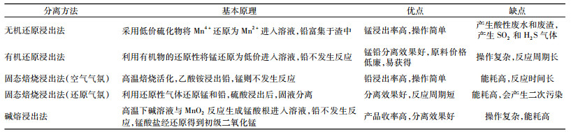 | 表 3 电解锰阳极泥中锰铅分离方法 Table 3 Separation methods of manganese and lead from electrolytic manganese anode slime |