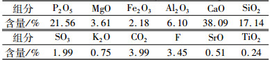 试验样品来自四川省清平磷矿区,属于什邡磷矿,为胶磷矿的一种。该矿石中含有一类很罕见的磷矿类型,磷锶铝石矿,理论化学式为SrAl3(PO4)2(OH)5H2O,什邡磷矿中的硫磷锶铝矿是一种含硫和钙的变种[6]。试验矿样多元素分析见表 1。