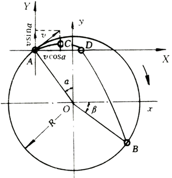 基于上述情况,本文依据被磨矿石的冲击破碎特性,通过调整钢球在落回点与被磨颗粒接触瞬间的动量法向分量,使之更有效地对矿粒实施冲击破碎和研磨,借以提高球磨机的磨矿效率。