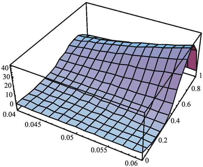 依据式(3),针对筒体直径为3.6 m的球磨机,以钢球半径r和磨机的转速率Ψ为变量做图,其结果如图 5所示。