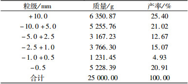 | 表 1 矿样的筛分分析结果 Table 1 Screening analysis result of sample |