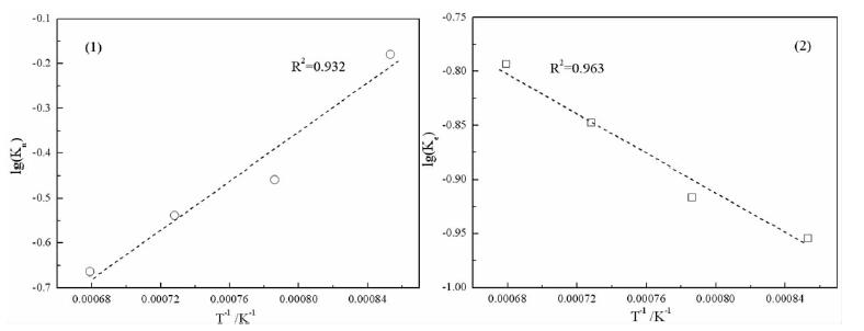 | $ \lg {K_e} = \lg K_e^0 - \frac{{{E_2}}}{{2.303R}} \cdot \frac{1}{T} $ | (6) |