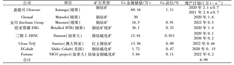 表 6 全球钴矿新增产能项目 Table 6 The new productivity projects for global cobalt mines