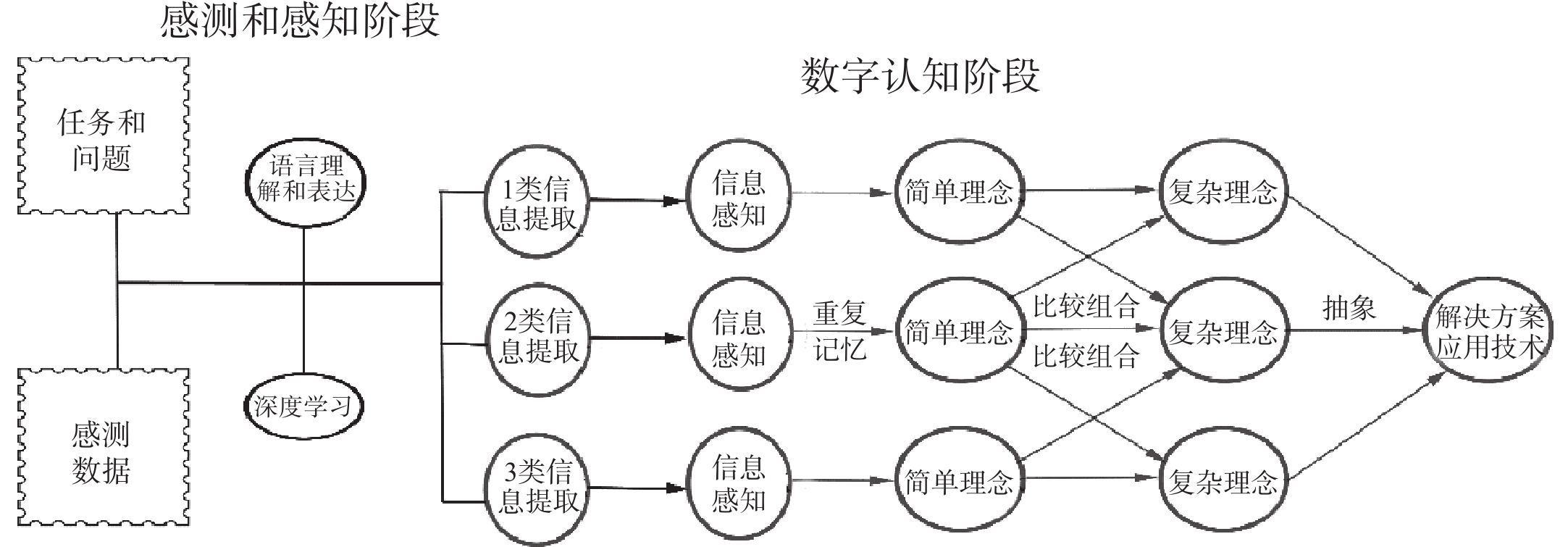 认知的概念具有模糊性。当认知作为动词使用时,指人类通过身体感知和大脑思维产生对世界的正确意识的行为。而当认知作为名词使用时,它的含义是人类与世界产生的一种精神和物质的交流和互动作用[4, 6,11-12]。例如在认知过程中,精神能量运动的同时消耗具有物质能量的脑细胞。人类的认知形成身体与认知对象之间相互作用组成的认知系统;人类连接主观世界和客观世界的桥梁就是人的认知系统。认知系统把感知的客观世界通过符号抽象为人类的语言,或者通过简约编码为图像和音律,保存在大脑的记忆细胞中。对于不同的认知对象,人类认知系统的结构是不同的。