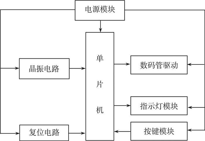 目前主流的数字时钟设计, 主要有通过小规模的集成电路实现计时效果、使用专用的电子钟芯片配合外围电路, 或者用单片机作为主控制器实现等[2]。其中使用小规模的集成电路, 在后续的功能扩展上困难且设计复杂。使用专用的电子钟芯片, 不仅价格昂贵, 而且维护困难。而使用单片机来完成, 通过控制单片机定时计数器就可以达到时、分、秒的计数[3], 不仅设计简单方便, 而且编程控制灵活, 成本也更低、且更易维护[4]。